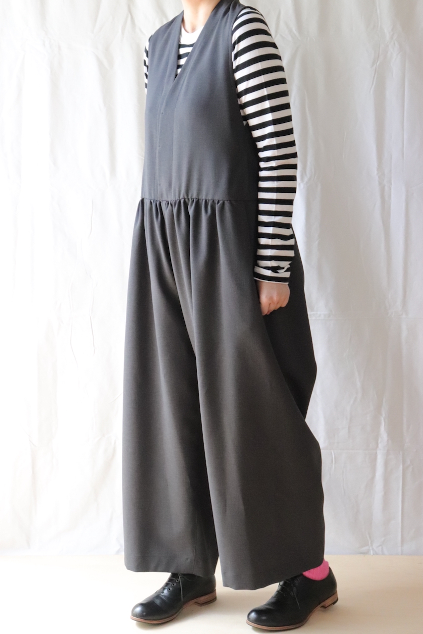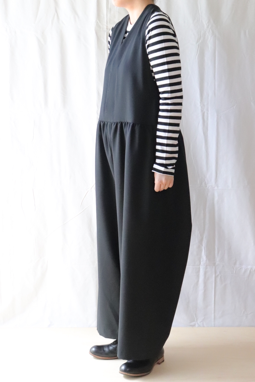 NO CONTROL AIR/ノーコントロールエアー ウエストギャザーワイドオーバーオール ブラック・グレー [SN-NC0809OO]