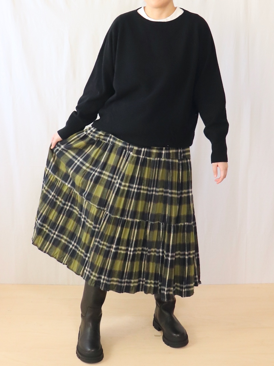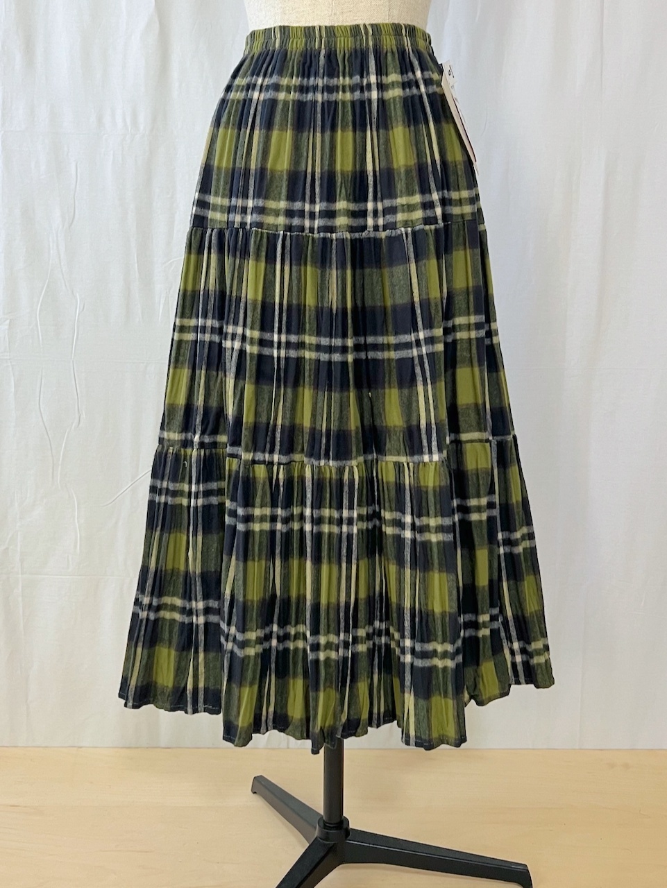 Rockmount/ロックマウント コットン フランネル しわ加工 ロングスカート オリーブ×ブラック [sp9948]