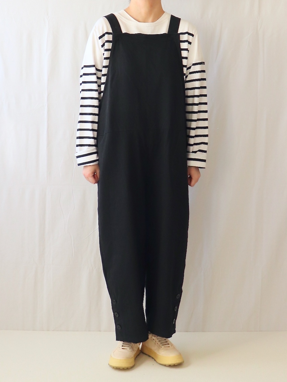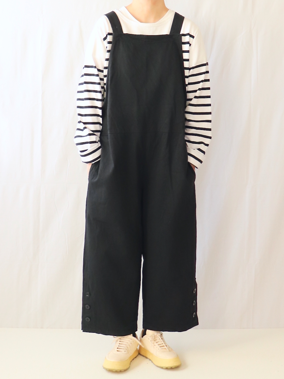 程よくゆったりしたシルエットですが、全体のラインがきれいなので子供っぽくならない大人のサロペットに仕上がっています。
